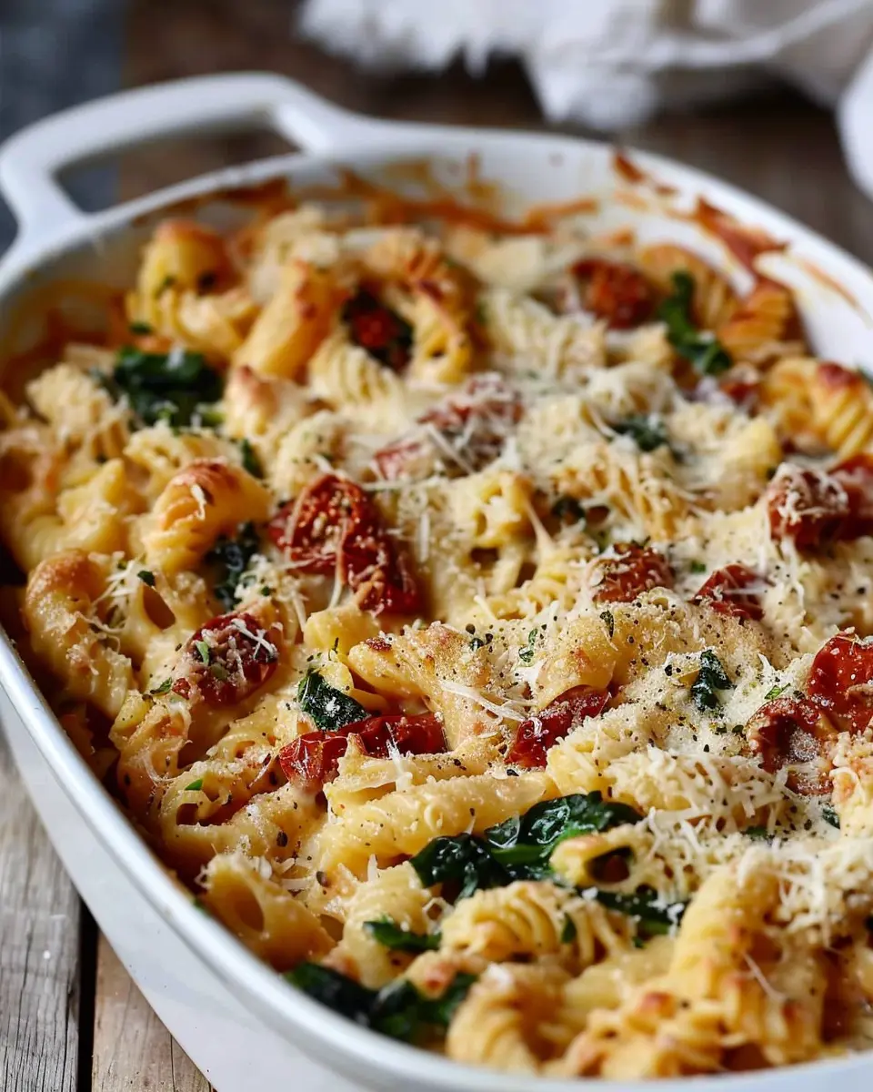 When indulging in this delicious Baked Boursin Cheese Pasta with Sundried Tomatoes and Spinach, it’s helpful to know what you’re consuming. A serving typically contains around 450 calories. This includes a rich mix of carbohydrates from the pasta, along with fats from the Boursin cheese, making it a satisfying meal for a cozy dinner.