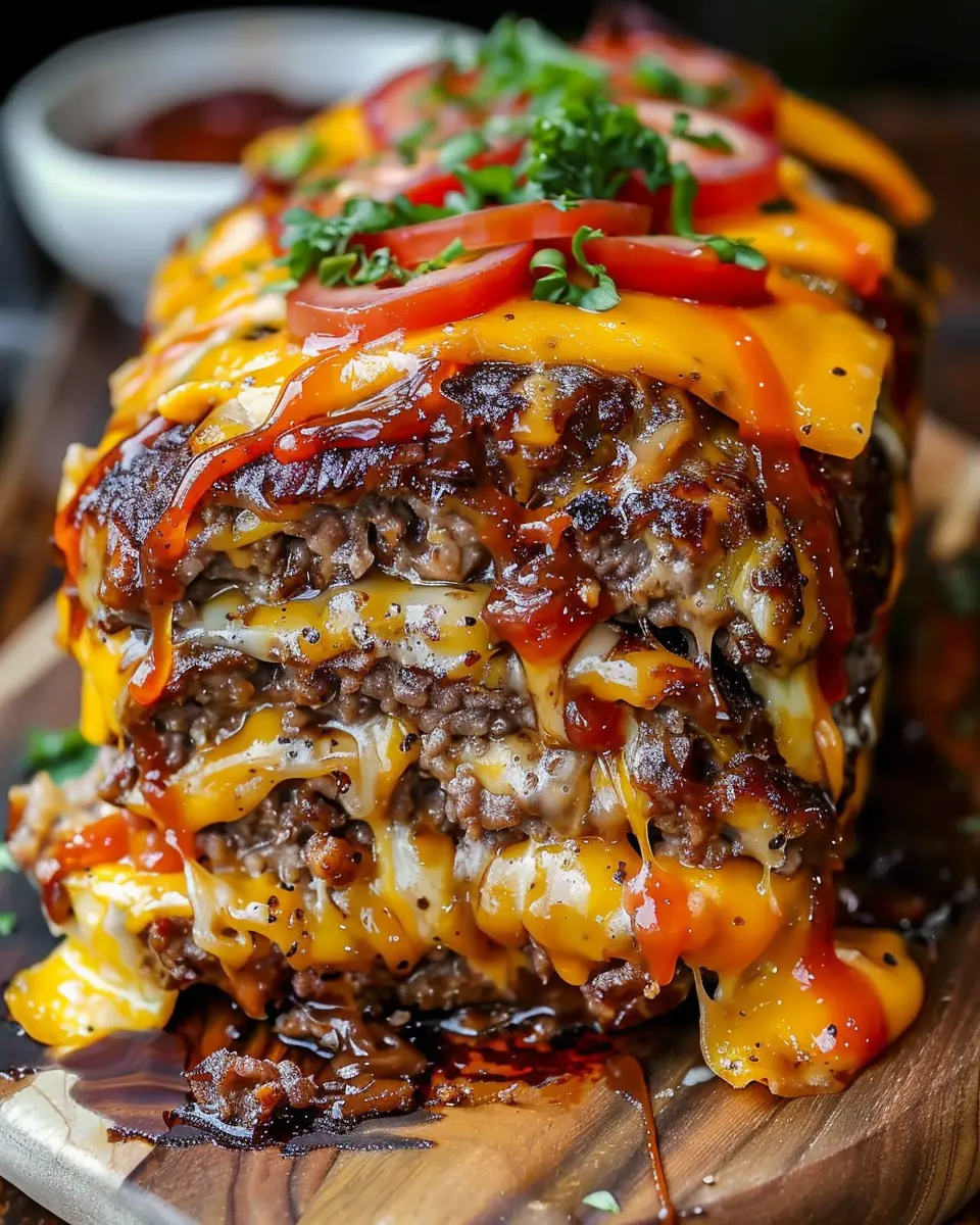 PrintCheeseburger Meatloaf: Easy, Juicy Twist with Turkey Bacon