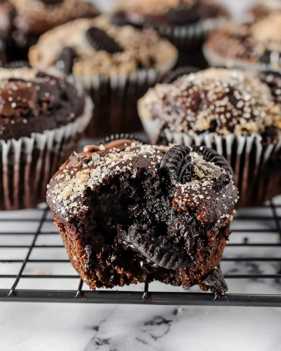 Storing leftover Chocolate Oreo Muffins is super easy! Allow them to cool completely, then place them in an airtight container. These muffins can stay fresh at room temperature for up to 3 days, but if you want to extend their shelf life, consider refrigerating them. Just remember to bring them back to room temperature or warm them slightly in the microwave for the best texture.