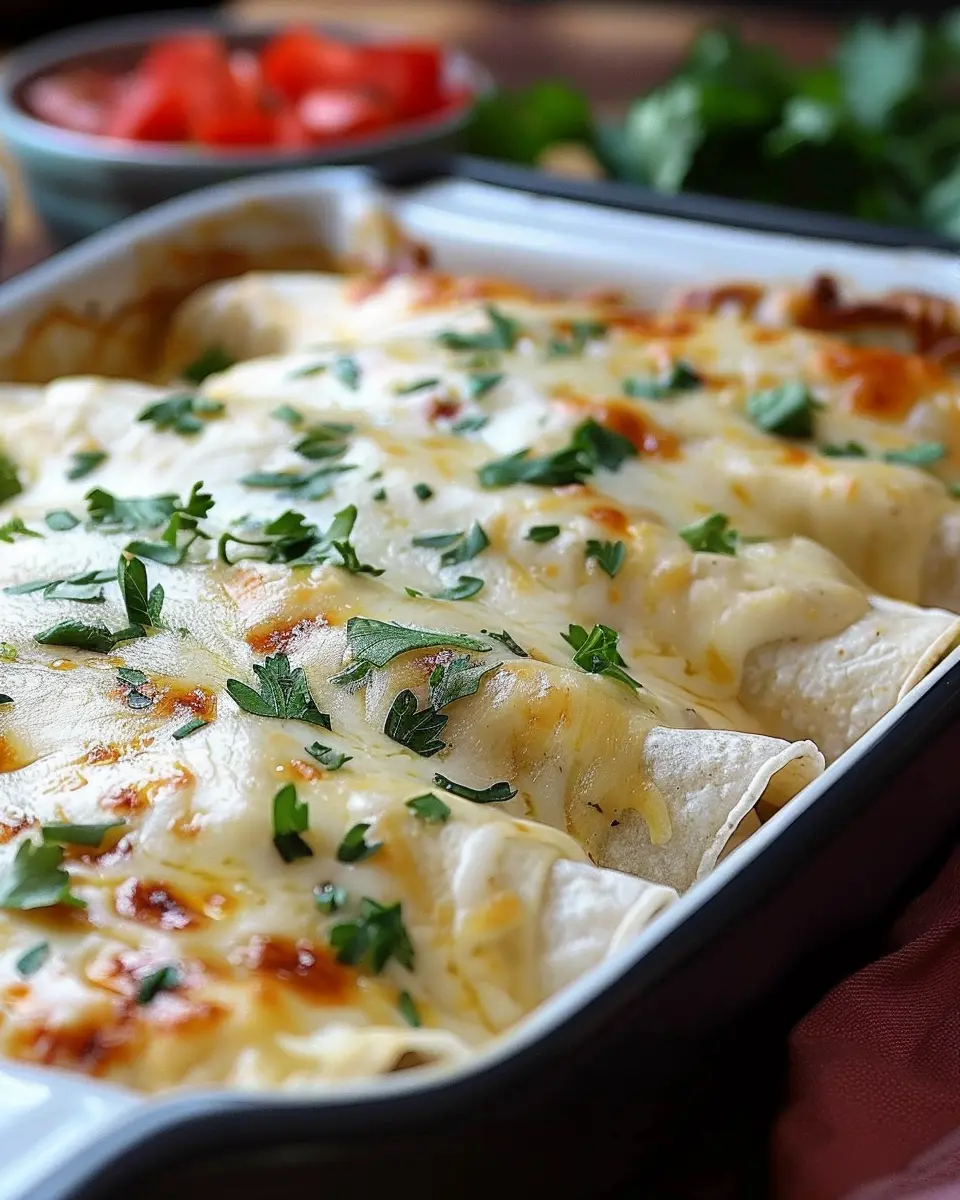Absolutely! One of the best things about creamy white chicken enchiladas is that they’re perfect for meal prep. You can assemble the enchiladas a day ahead and store them in the fridge, covered with foil. Just pop them in the oven when you’re ready to bake. If you want to prepare them even further in advance, consider freezing them—just make sure to layer parchment paper between the enchiladas to avoid sticking.