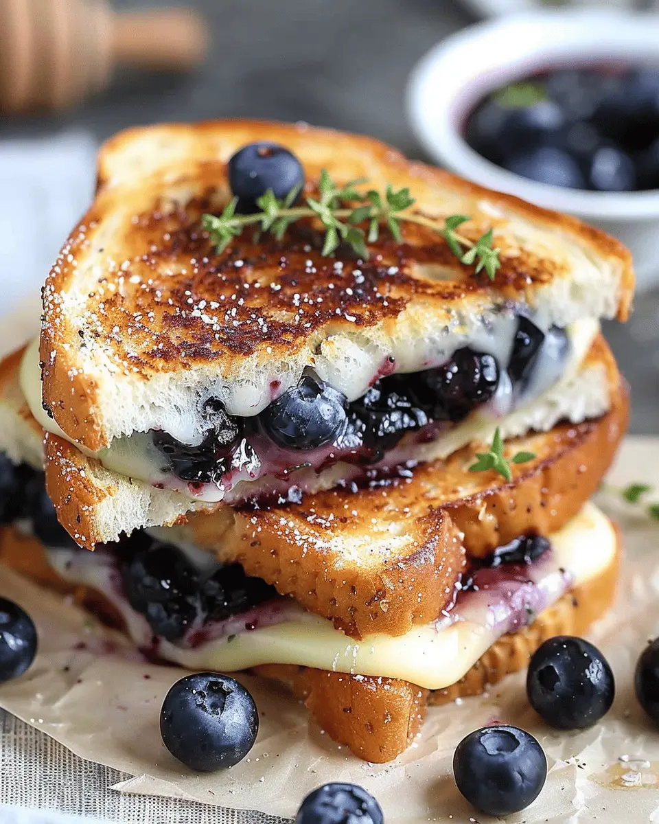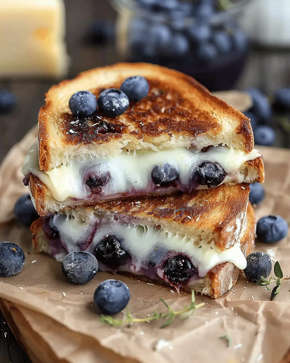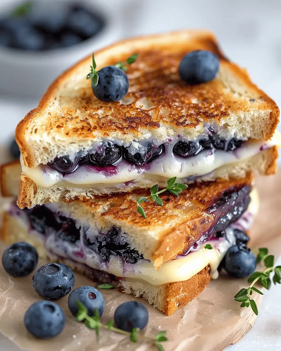 Imagine biting into this sandwich—the gooey cheese melting against the sweet-tart blueberries is a flavor experience like no other.
