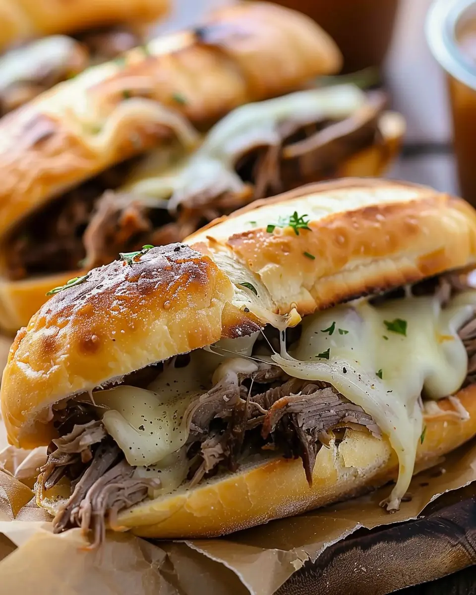 - Rolls: Choose hoagie or French rolls that can hold up to the dipping without falling apart.