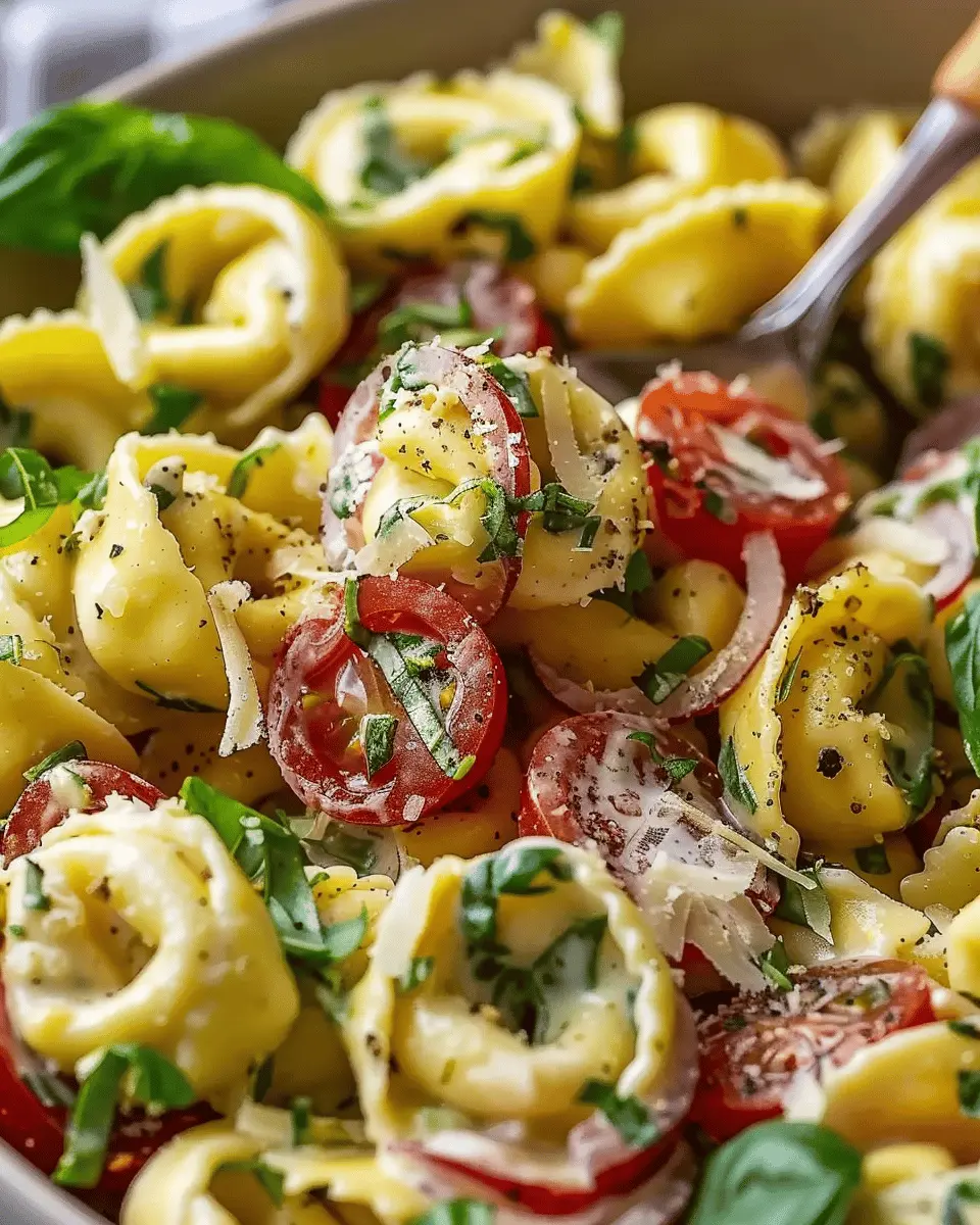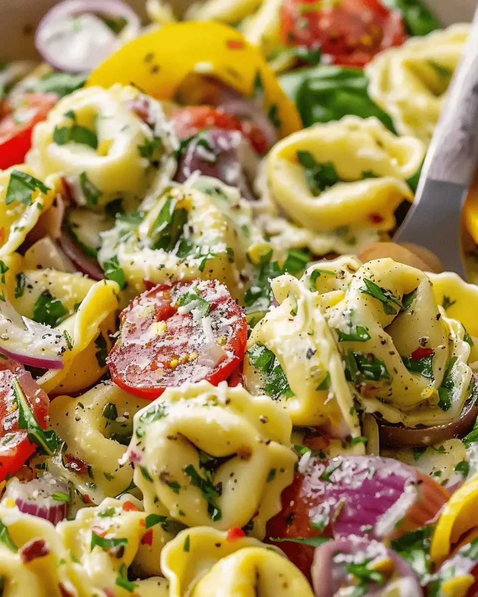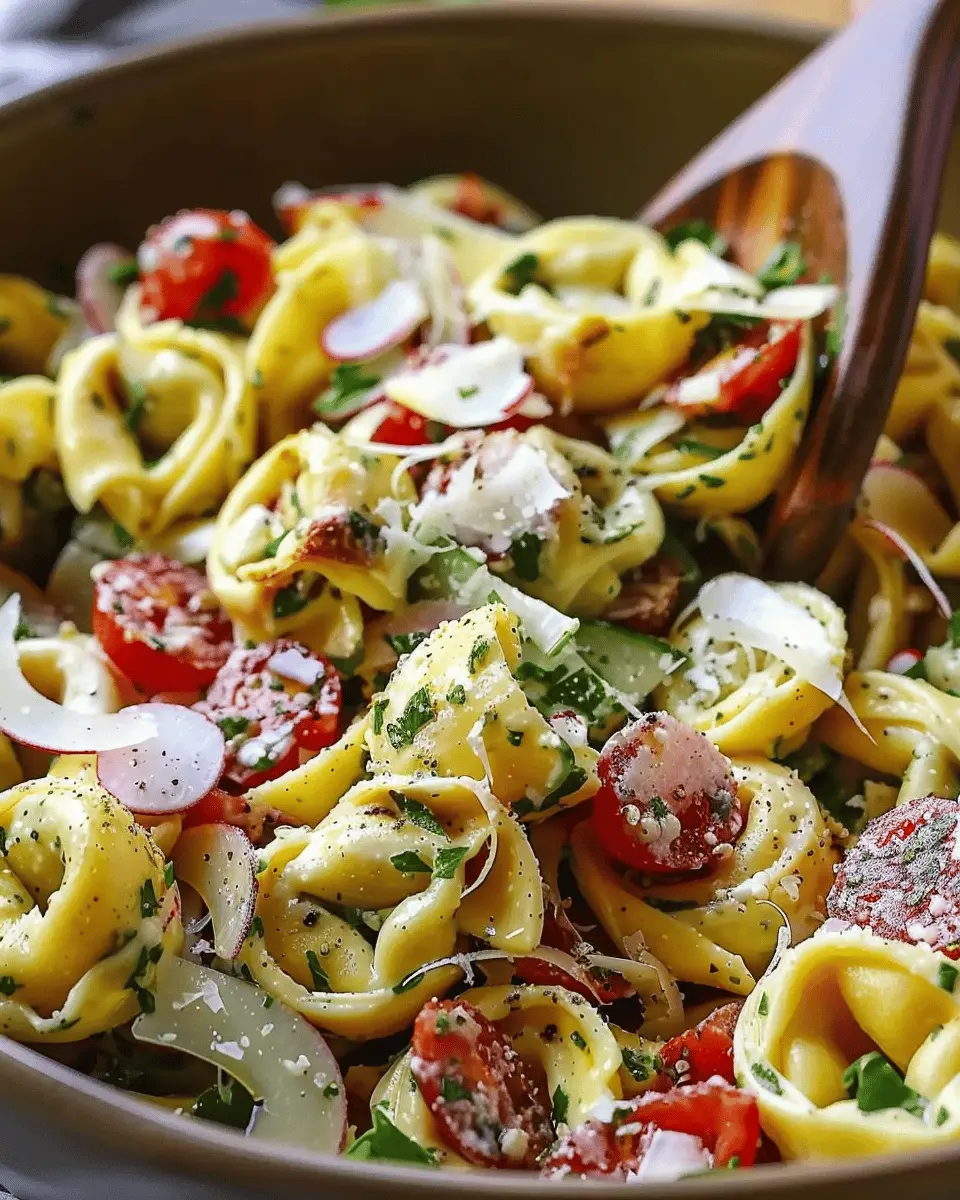 A vibrant and nutritious salad featuring fresh tortellini, perfect for a healthy meal or side dish.