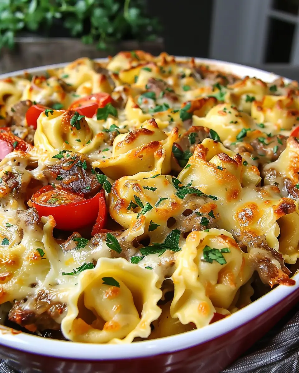 PrintGolden Cheese Steak Tortellini Casserole: An Indulgent Family Favorite