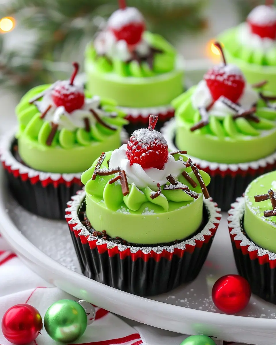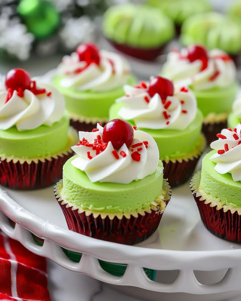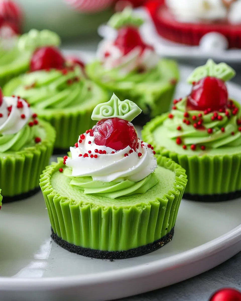 Presentation can elevate your Grinch mini cheesecakes from delightful to truly spectacular! Try placing them on a festive platter lined with green and red decorations to make them pop. You could also use miniature Christmas hats or Santa-themed cupcake toppers to add a whimsical touch. Another fun idea is to serve them inside clear glass jars, topped with crushed peppermint or festive sprinkles, creating an eye-catching layered effect that guests will love.