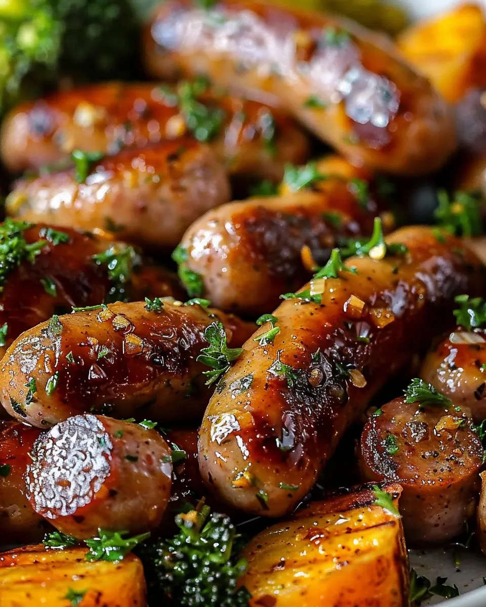 For that sweet, sticky glaze, combine honey with fresh garlic, a squeeze of lemon, and a dash of soy sauce or chicken broth. You can brush this mixture over the sausages and veggies halfway through roasting for an extra burst of flavor.
