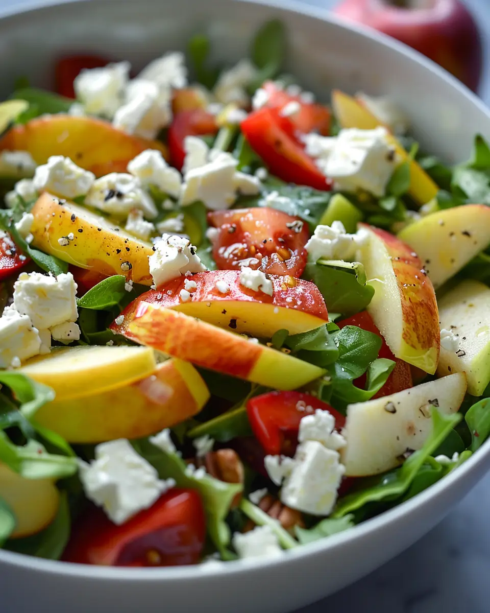 A refreshing salad featuring the crisp sweetness of Honeycrisp apples and the tangy flavor of feta cheese, perfect for any occasion.