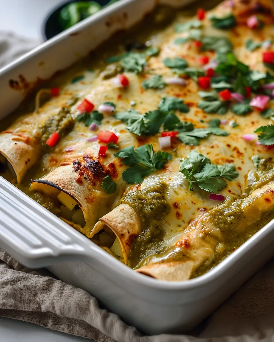 With these suggestions, your Plant-based Potato Green Chili Enchiladas will not only taste fantastic but look stunning on the table.