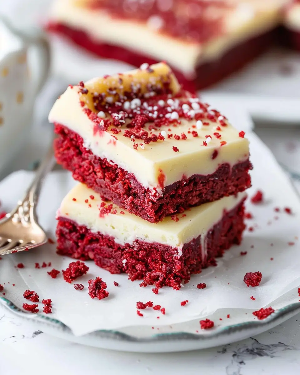 Indulge in these delicious red velvet cookie bars that are perfect for any occasion.