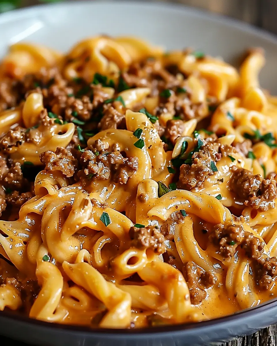 The way you present your stovetop creamy ground beef pasta can make it feel extra special. Serve in deep, rustic bowls to give a homey vibe. Garnish with freshly chopped parsley or grated Parmesan for a touch of elegance.