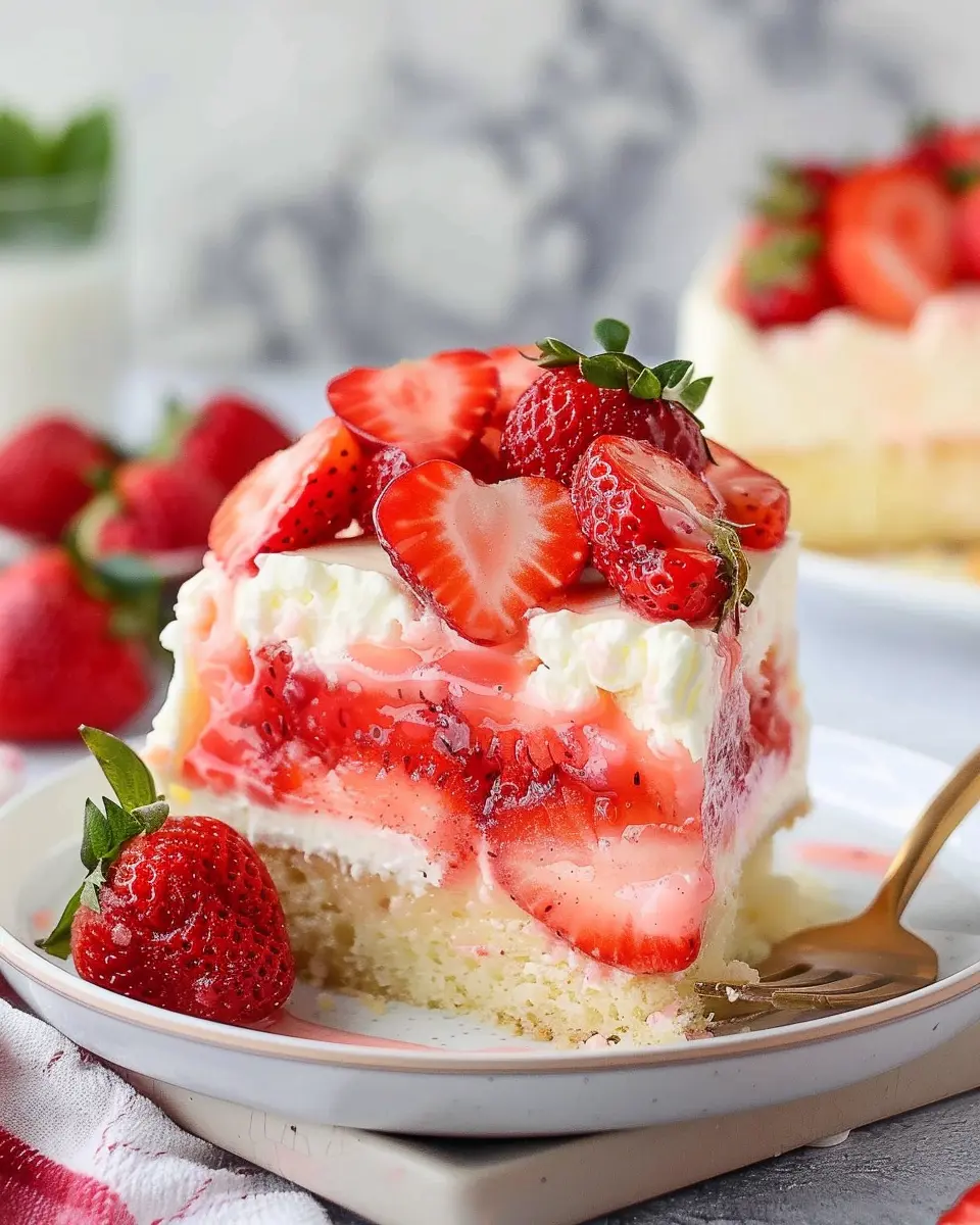 Strawberry poke cake with a twist