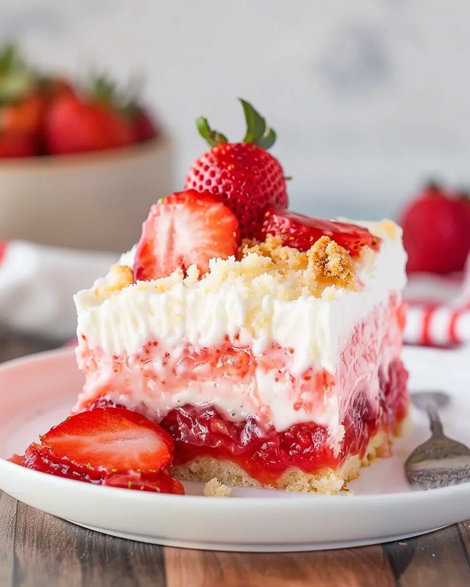 Feel free to get creative with strawberry cheesecake poke cake! If you’re out of cream cheese, mascarpone works beautifully for that creamy component. Instead of regular cake mix, try a gluten-free version or make it from scratch for that homemade touch. Fresh strawberries are fabulous, but frozen strawberries can save the day too—just be sure to thaw them and drain excess liquid beforehand. Interested in more substitution ideas? Check out The Spruce Eats or Allrecipes for inspiration!