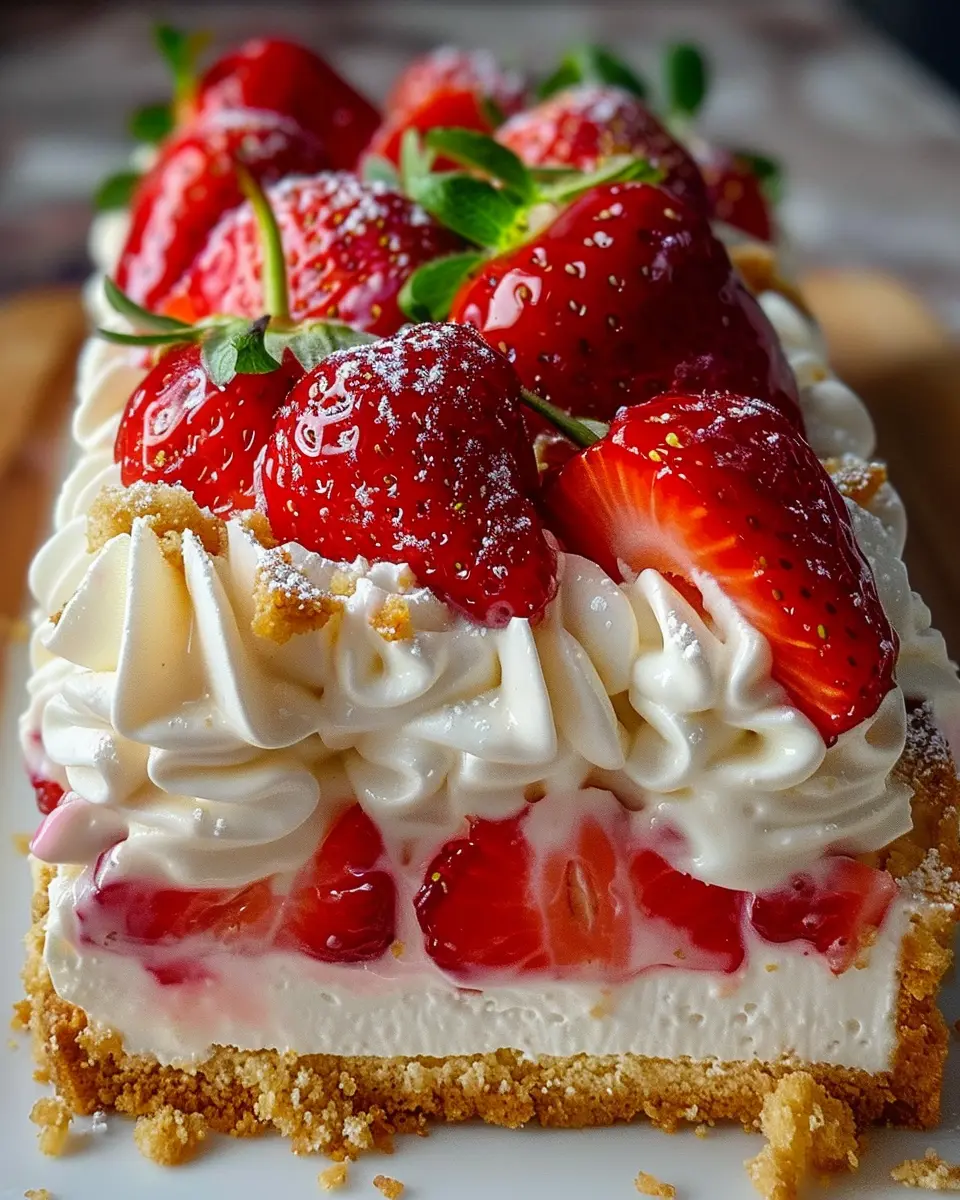 A deliciously creamy and flavorful dessert that blends the classic flavors of strawberry shortcake and cheesecake.